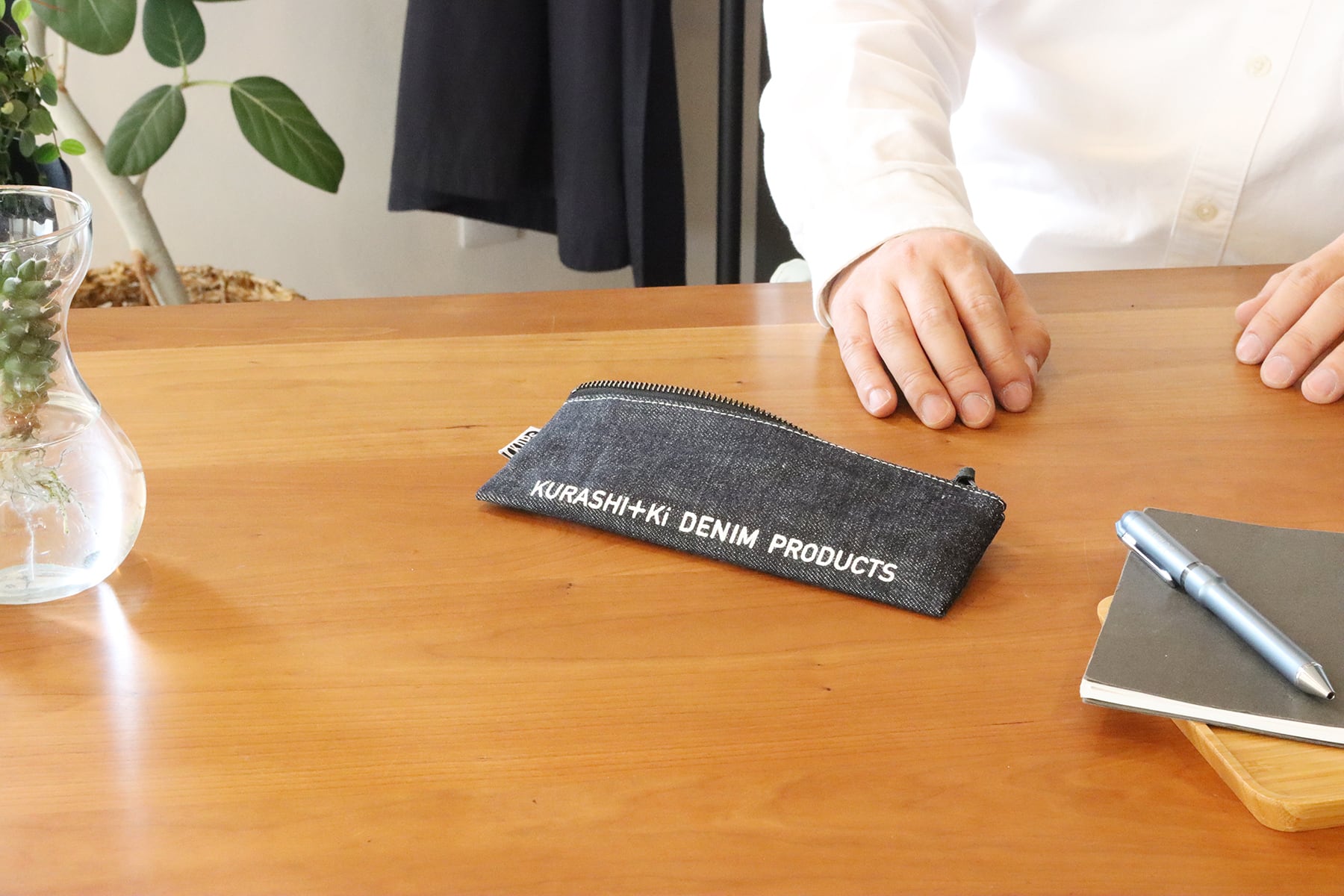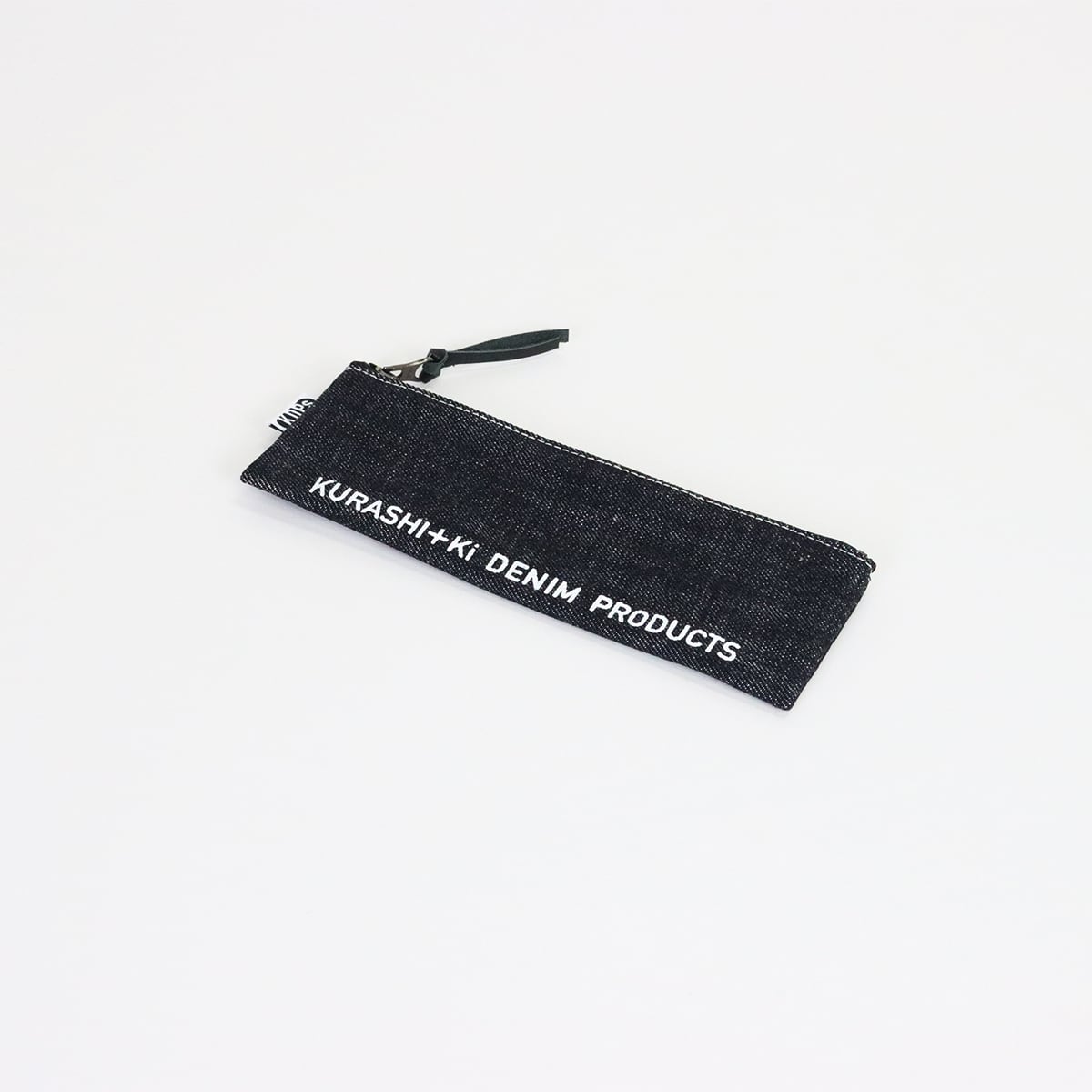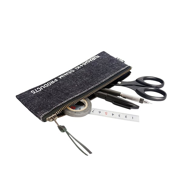 国産デニムの風合いを活かした、シンプルなデザインのペンケース。