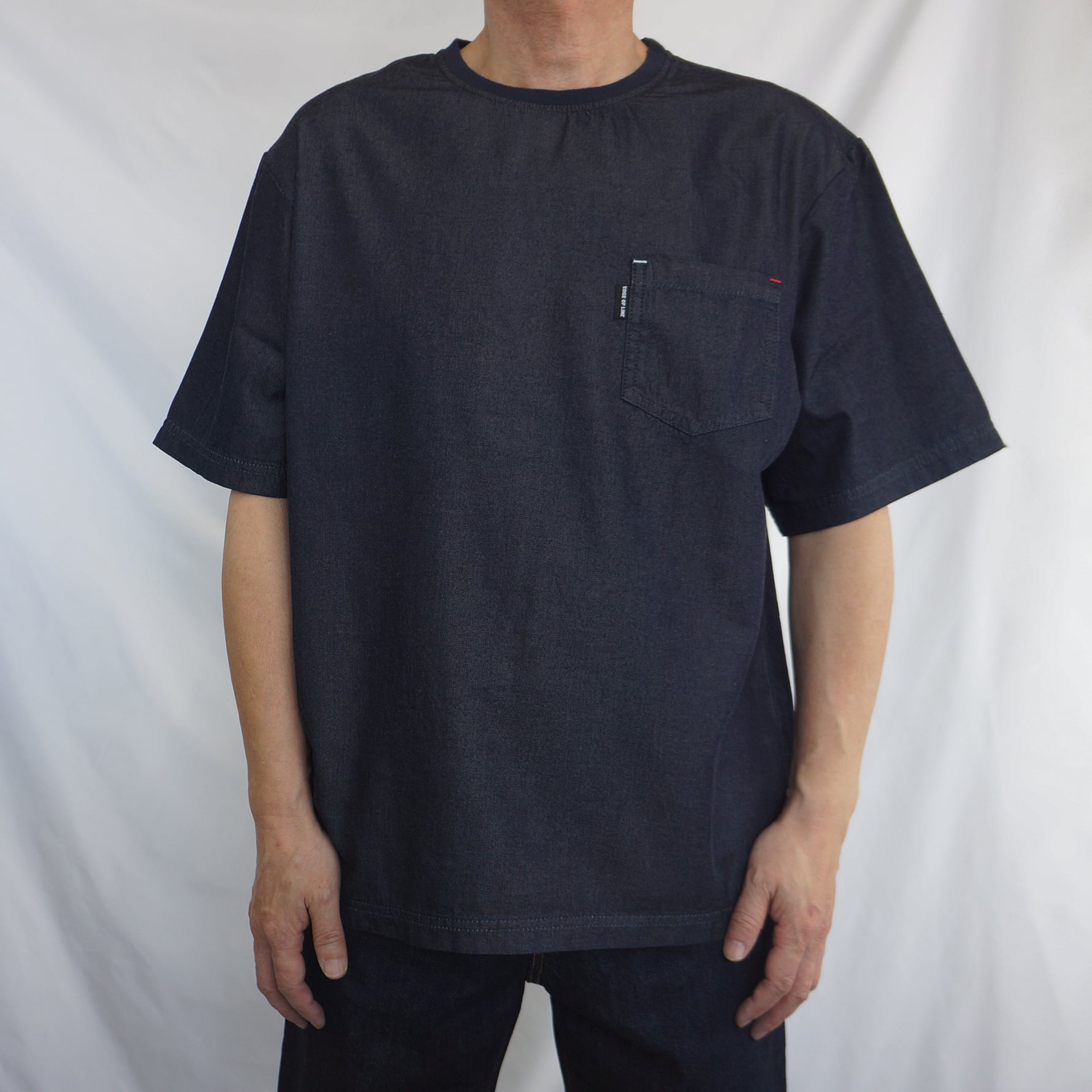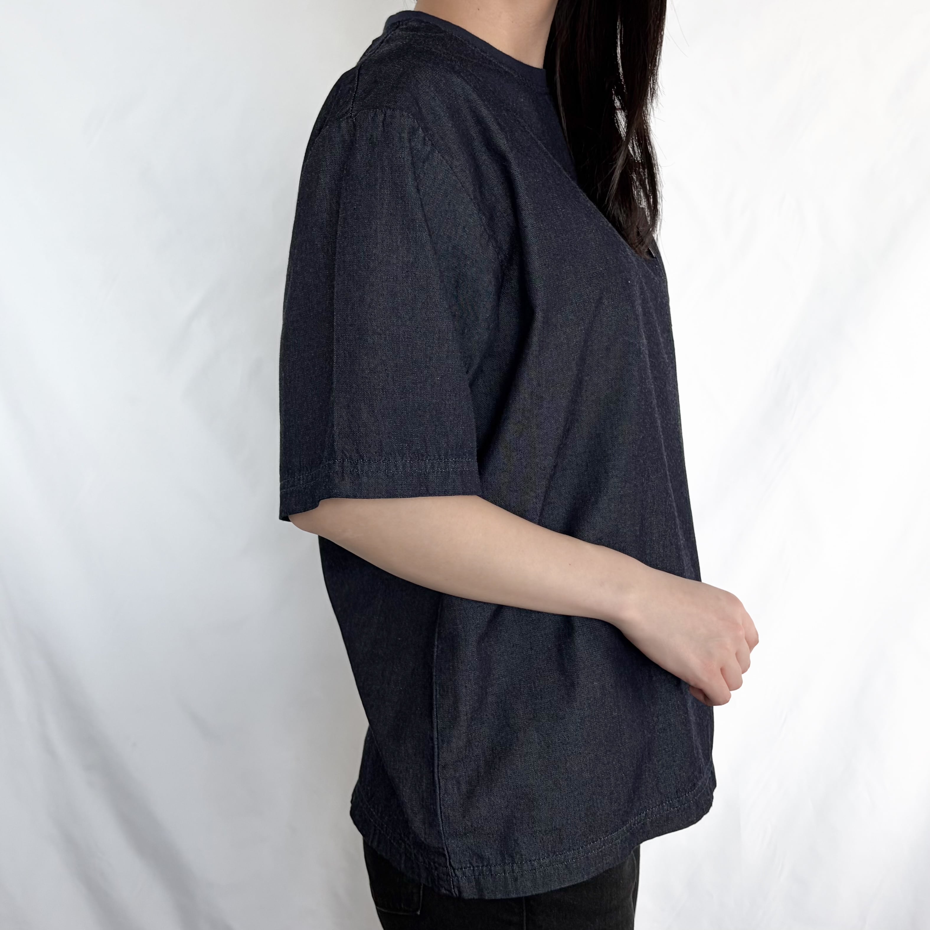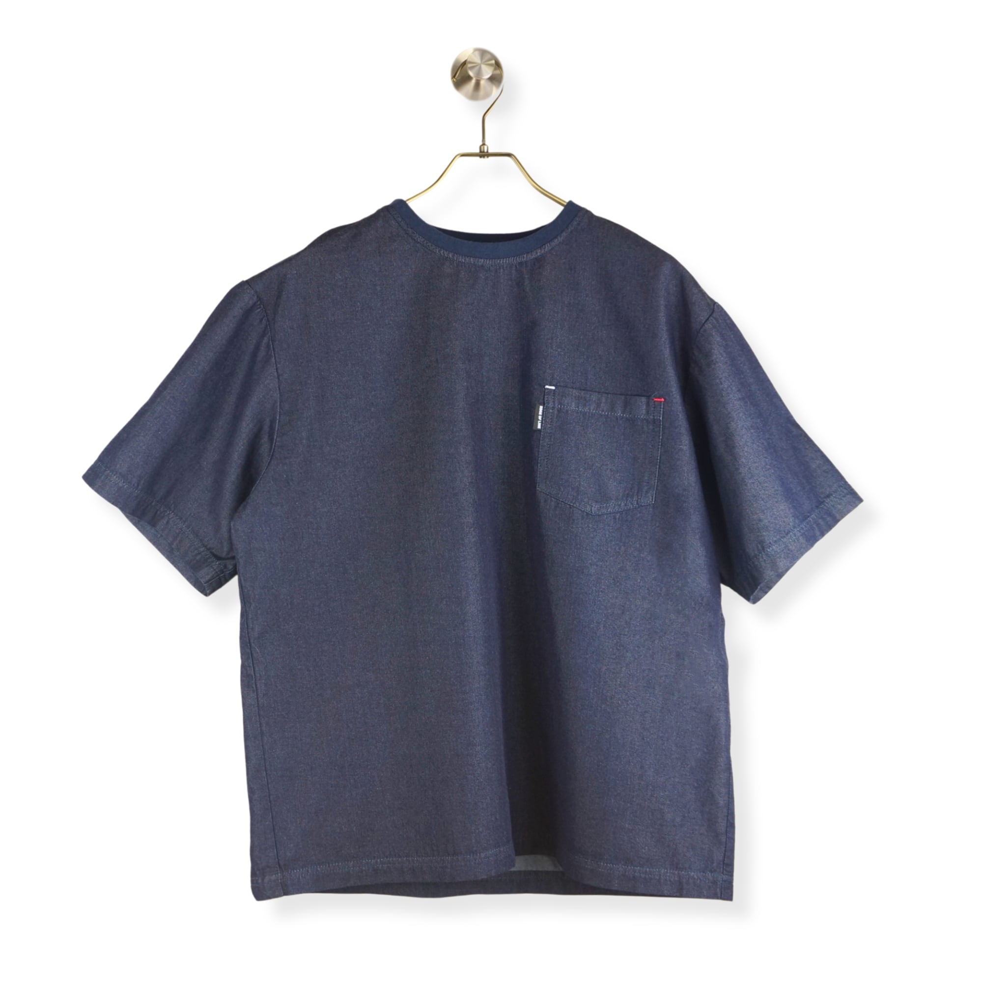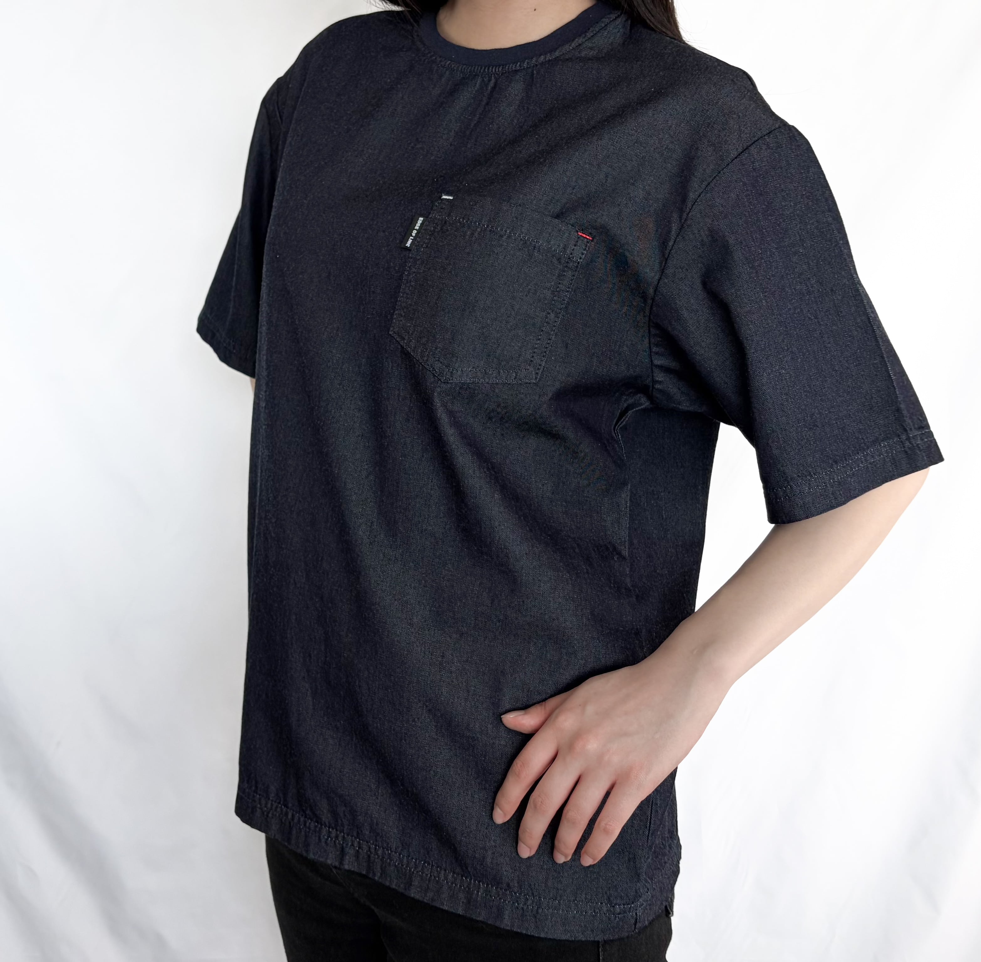 綿100%のデニム生地を使用した、風合い豊かなTシャツ。