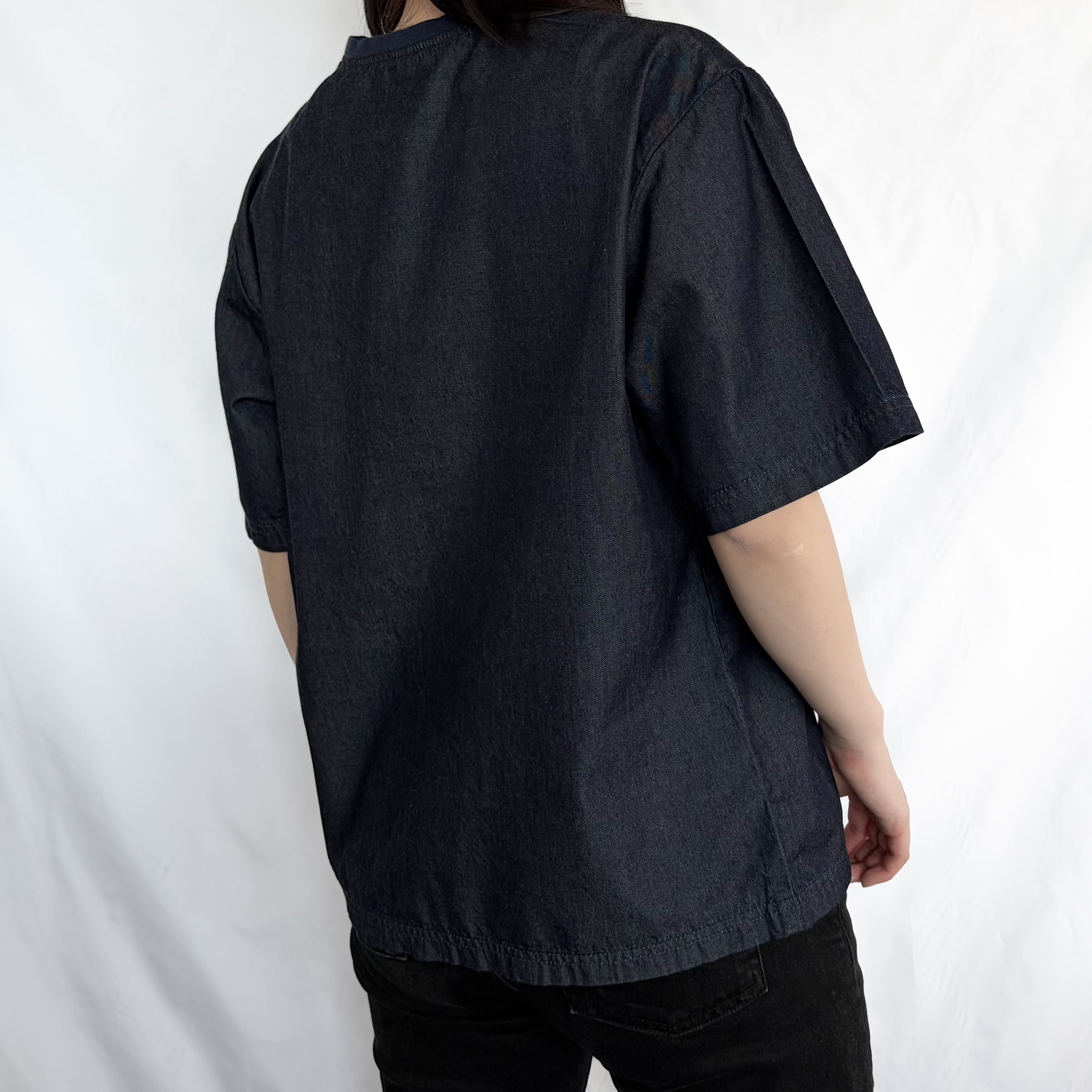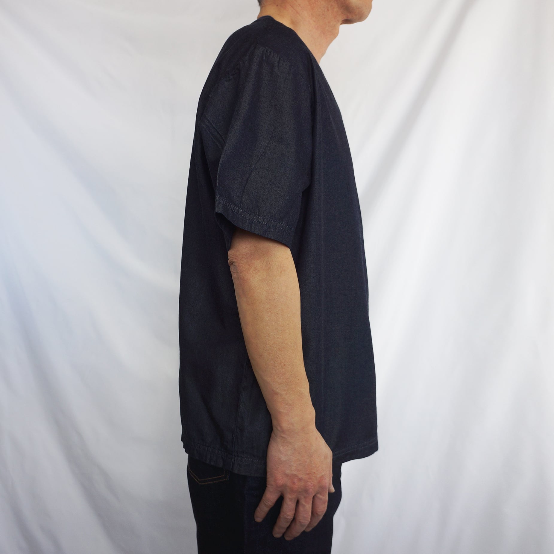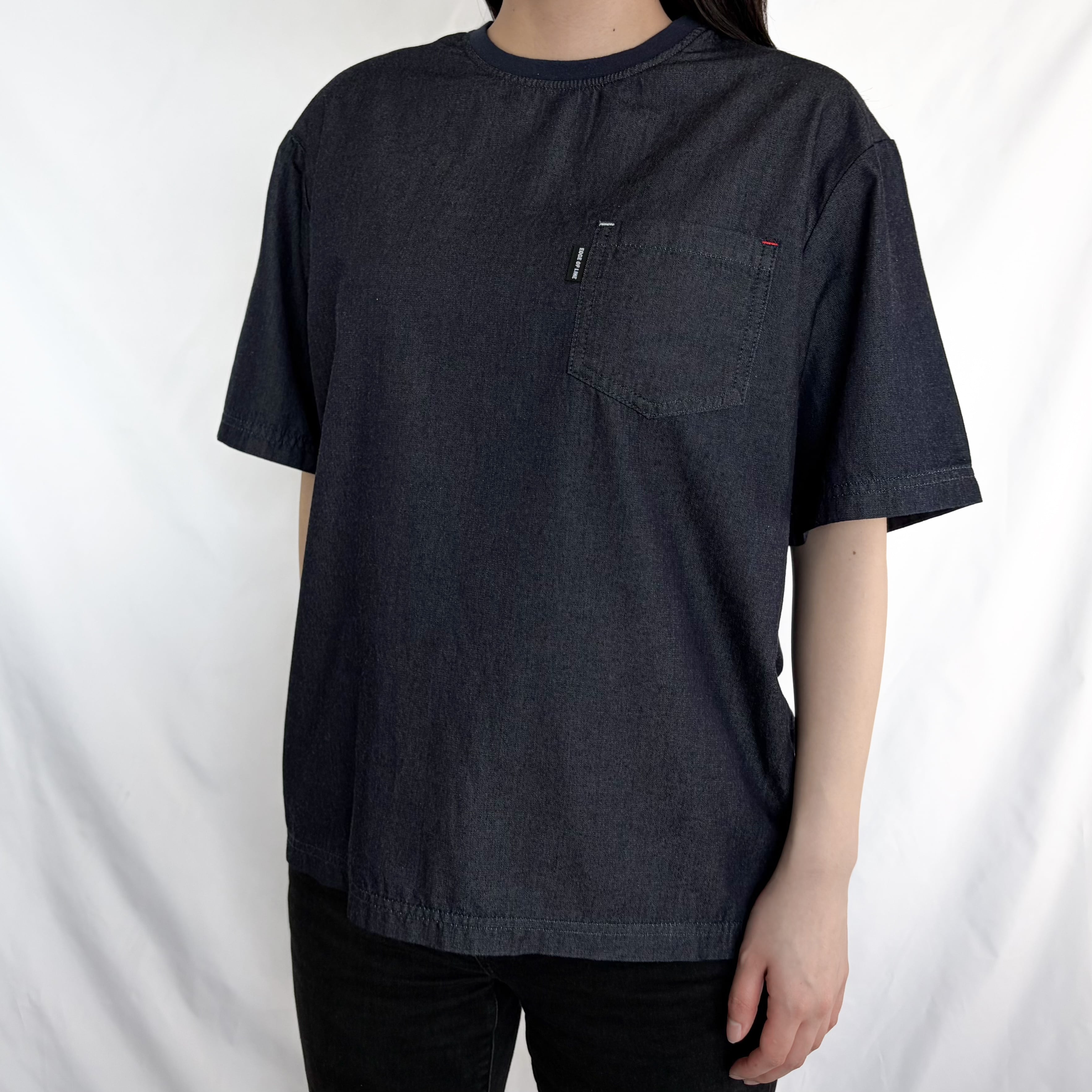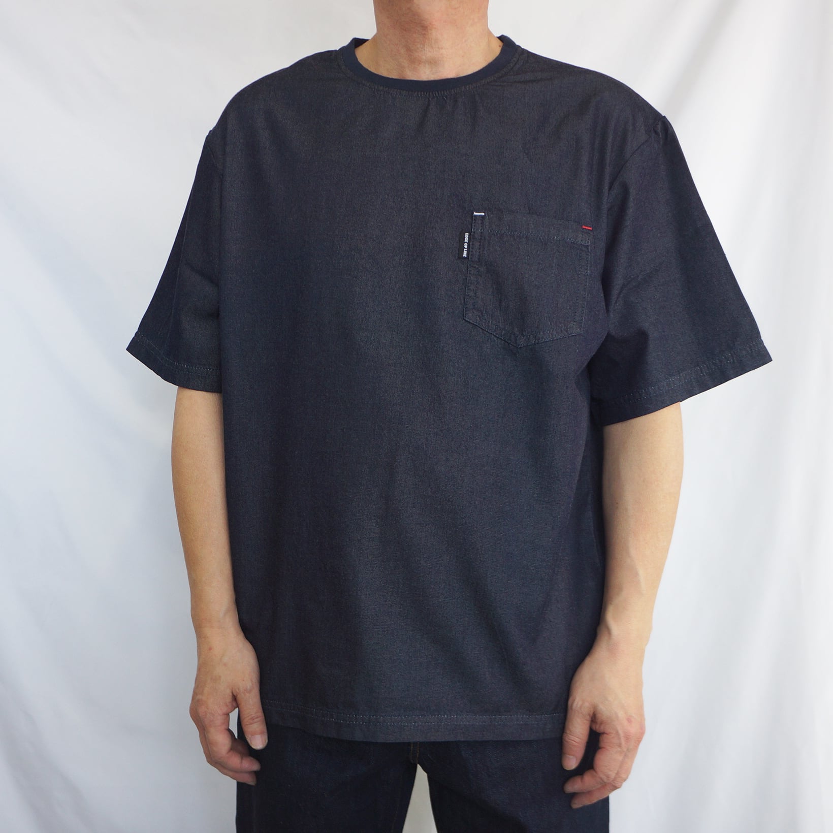 綿100%のデニム生地を使用した、風合い豊かなTシャツ。