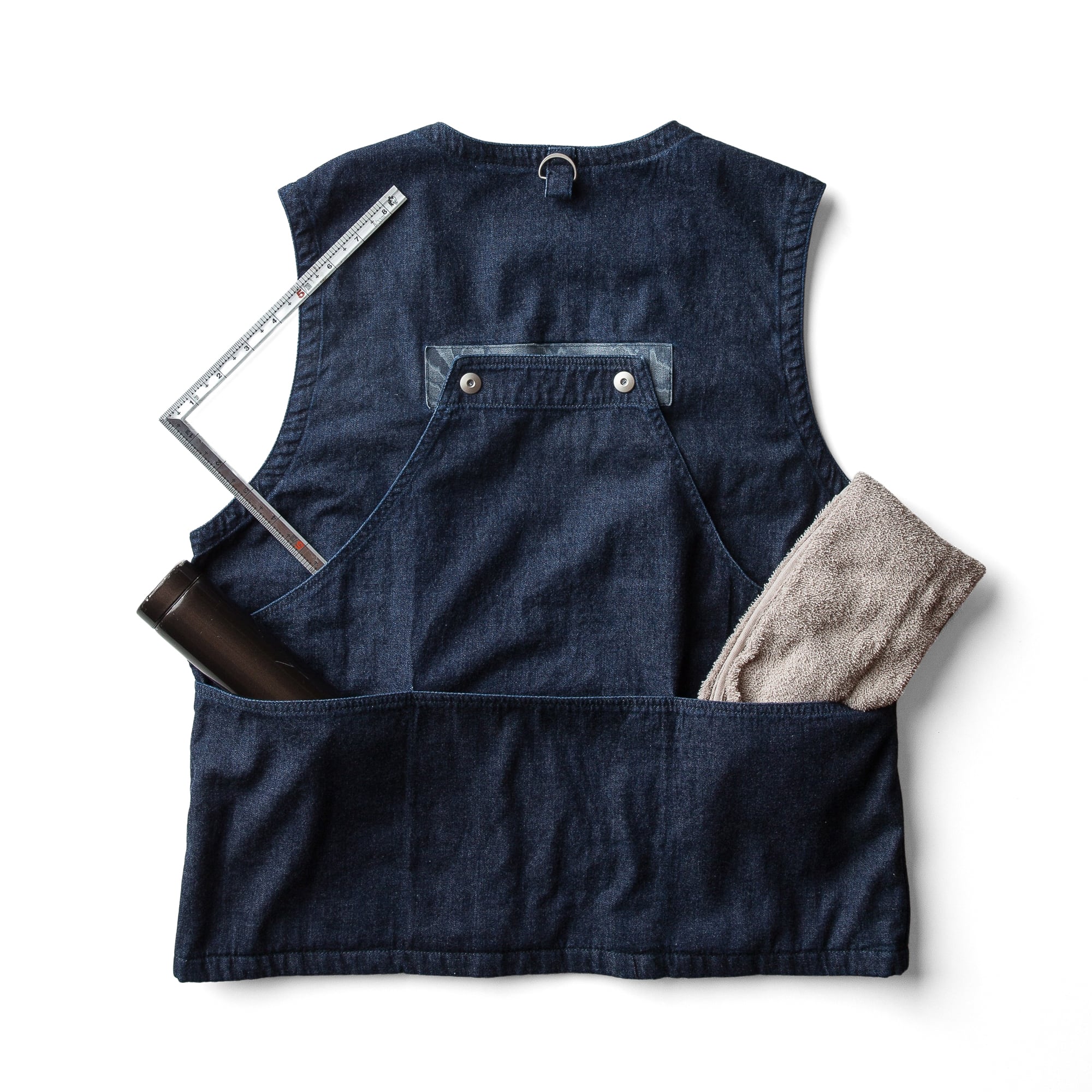 しっかりしたデニム素材で丈夫。着るほどに色合いが変わり、自分だけの風合いに育っていきます。
