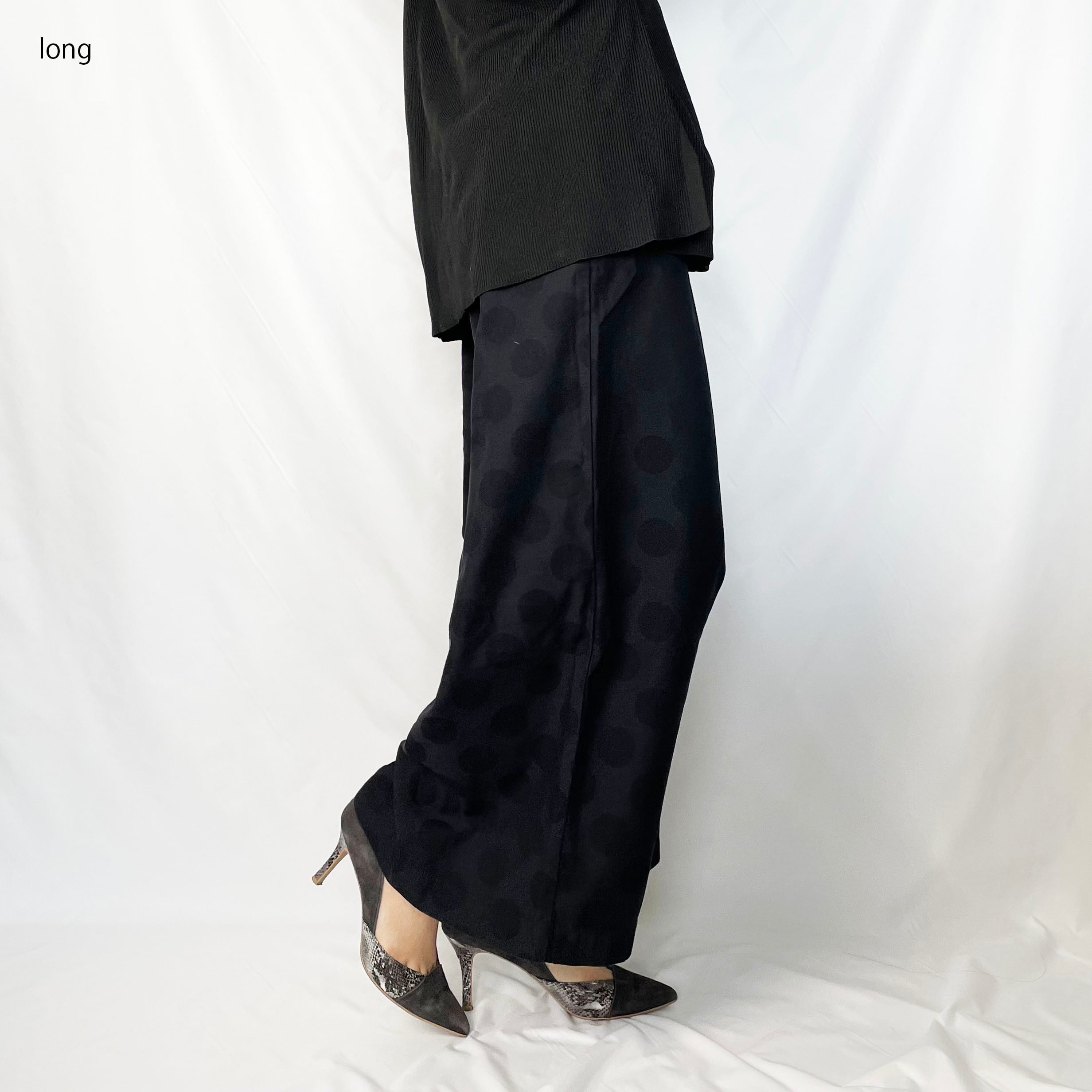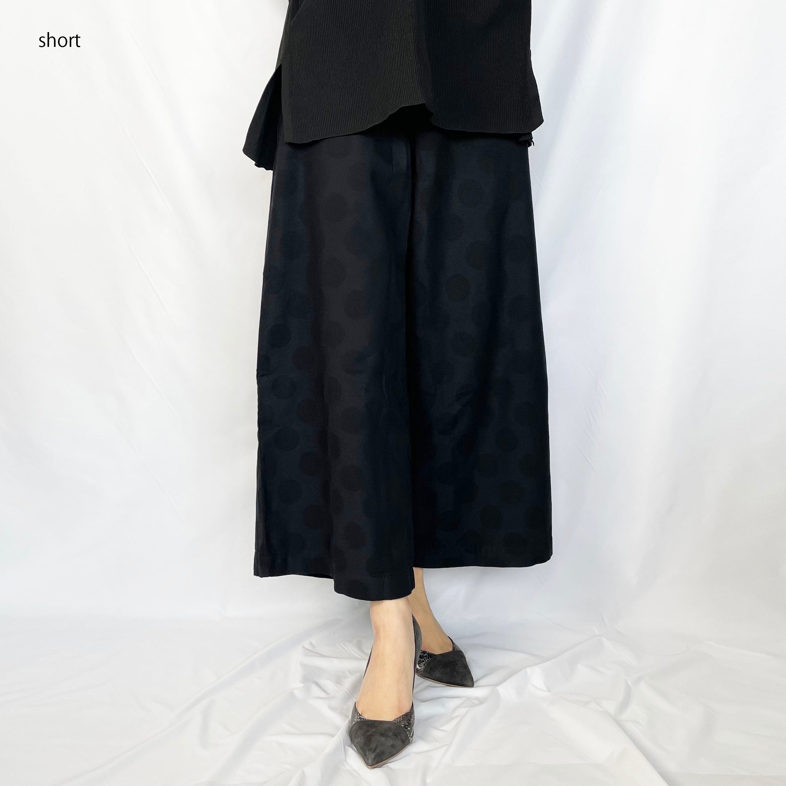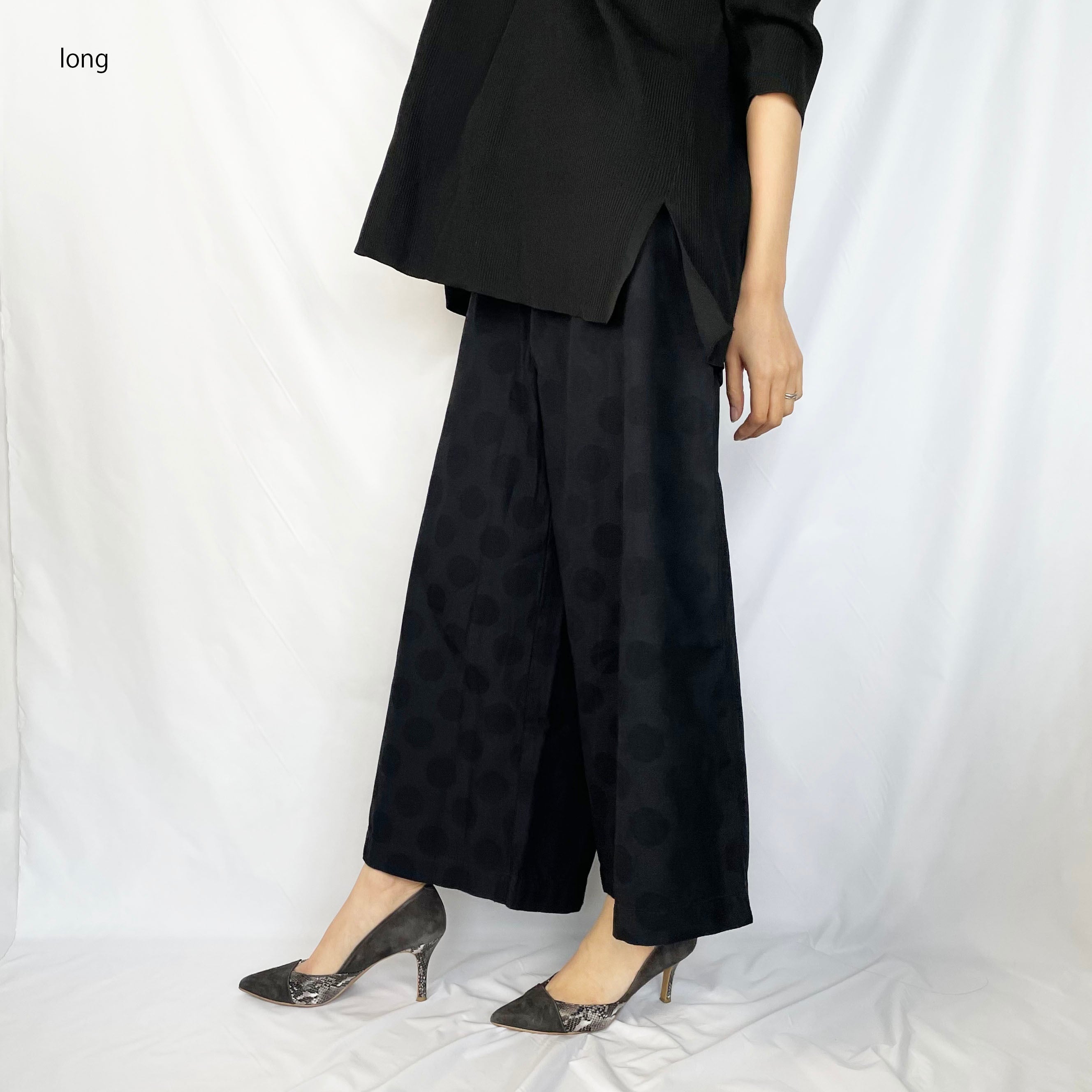 ブラックデニムにさりげないドット柄を施したワイドパンツ。