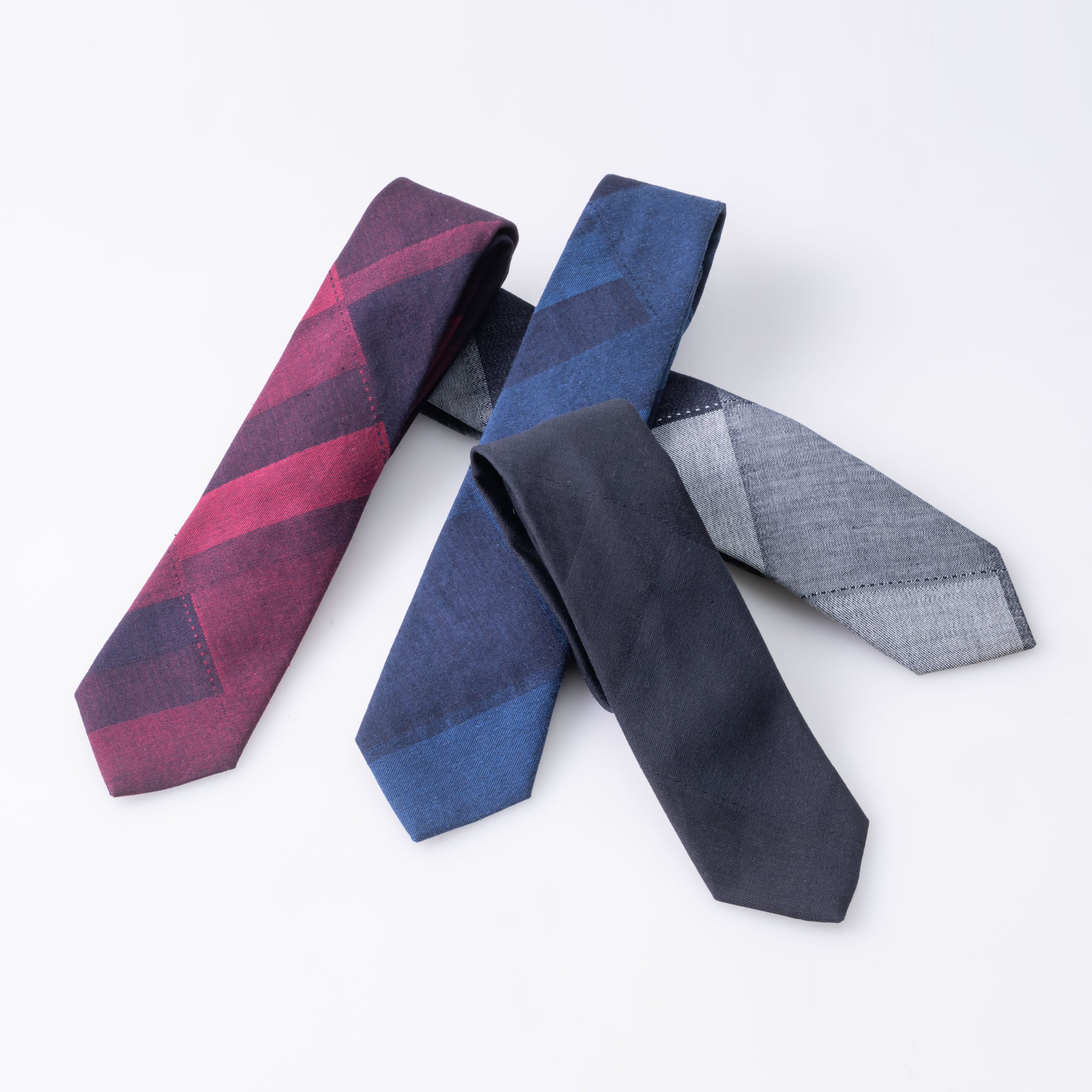 オリジナリティあふれるパッチワーク風デニムネクタイ。